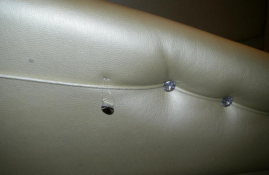 Пришлось использовать ''типашнур'' из того же материала, что убрало складки. Пуговицы держатся на леске 0.5мм.